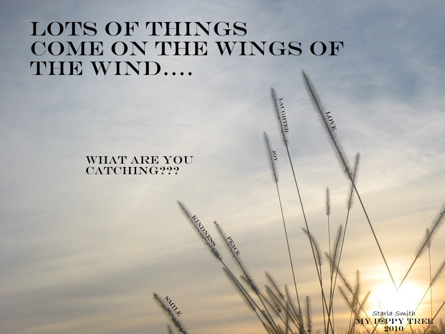 My Photography, Photoquote PhotoQuote #40 Posted by Starla on September 24, 2010January 23, 2011 Catch the wind ( double click to see it better if you need to) What’s blowing in the wind ?? The Lord is always blowing fresh wind into our sails…. ARE WE SEEING IT!!! Starla ( wow 40 photoquotes..how exciting :0) Share this: Click to email a link to a friend (Opens in new window) Email Click to share on Facebook (Opens in new window) Facebook Click to print (Opens in new window) Print Click to share on X (Opens in new window) X Click to share on Pinterest (Opens in new window) Pinterest Like Loading...