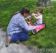 Several times I asked him to go ride his tricycle, or to put the ones I pulled in the bucket I had.