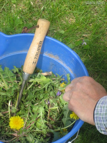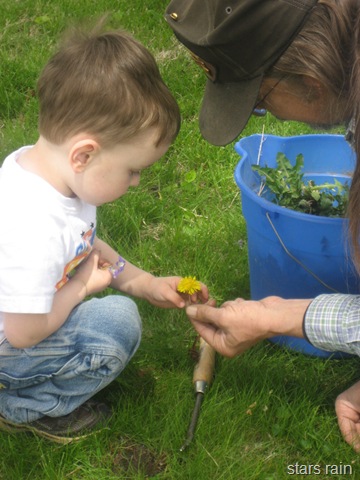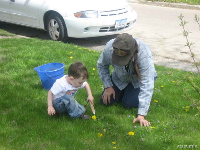 They worked hard, talking and hanging out in their own little world. They picked a lot of dandelions.
