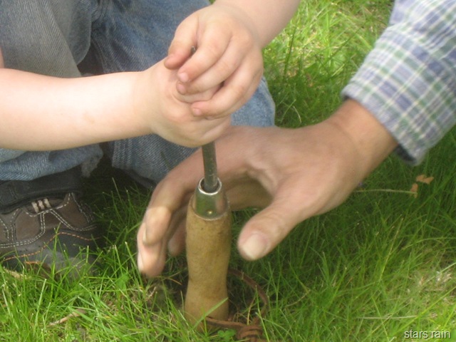 They worked hard, all the while my dad is encouraging David and reminding him to make sure you can see the words on the handle because that tells you that the picker is pointed in the right direction.