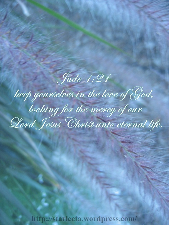 Jude 1:21 keep yourselves in the love of God, looking for the mercy of our Lord Jesus Christ unto eternal life.