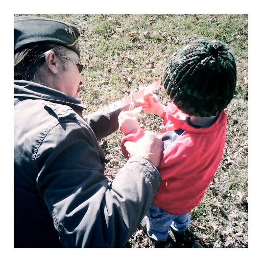 Grandpa is a Vet. So he wore his hat. We are so proud of him.
