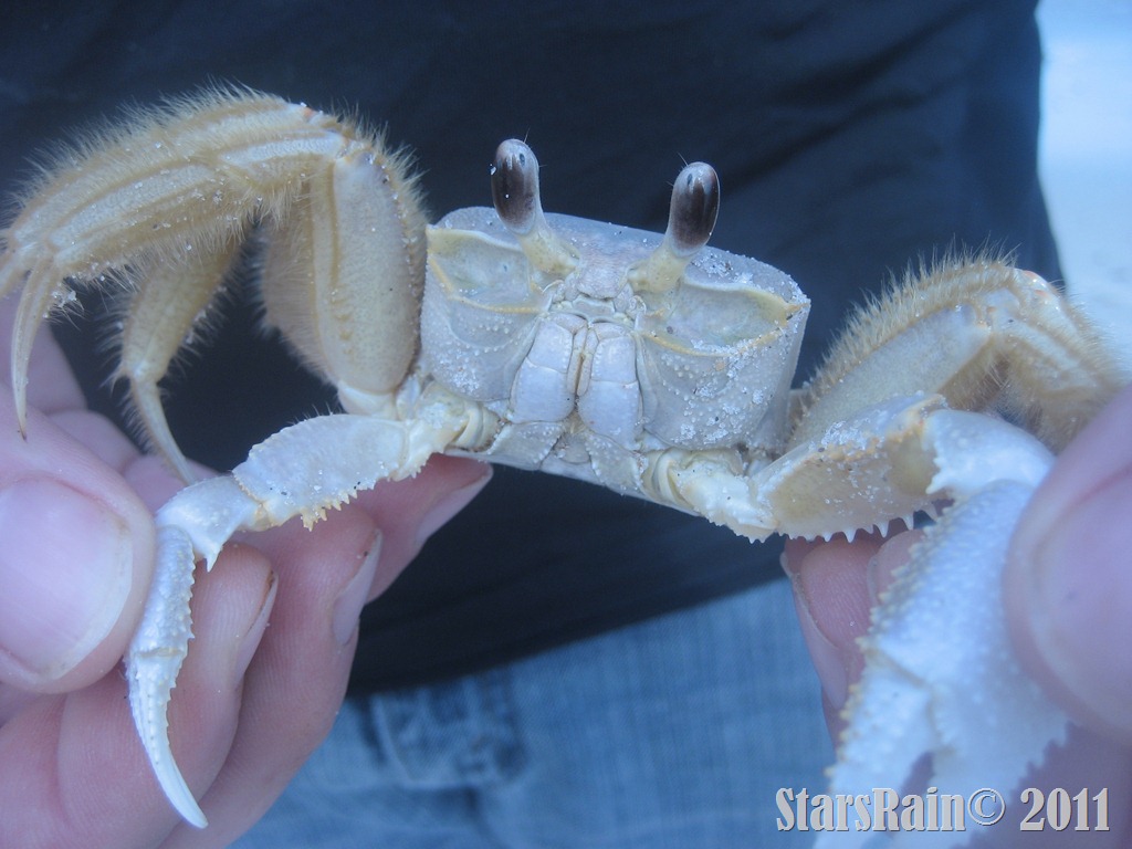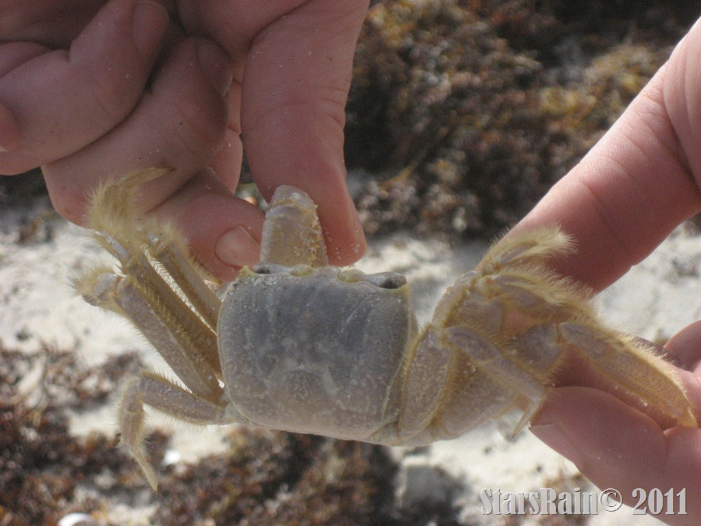 This is a Soap Box crab. We were running all over the place. It was really fast. My Brother in Law caught him by surrounding him with a towel and grabbing his claws. This thing had major attitude!