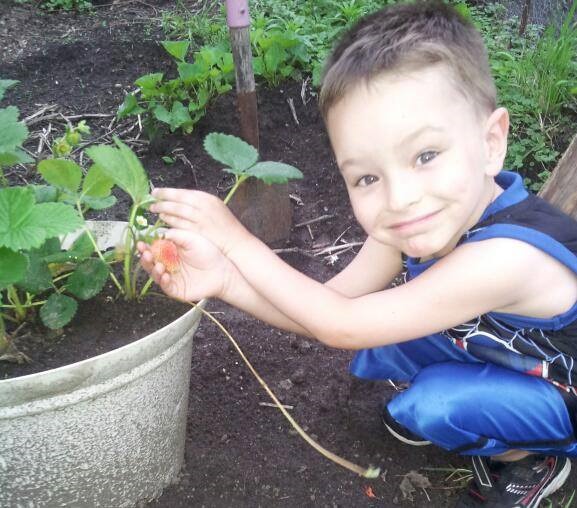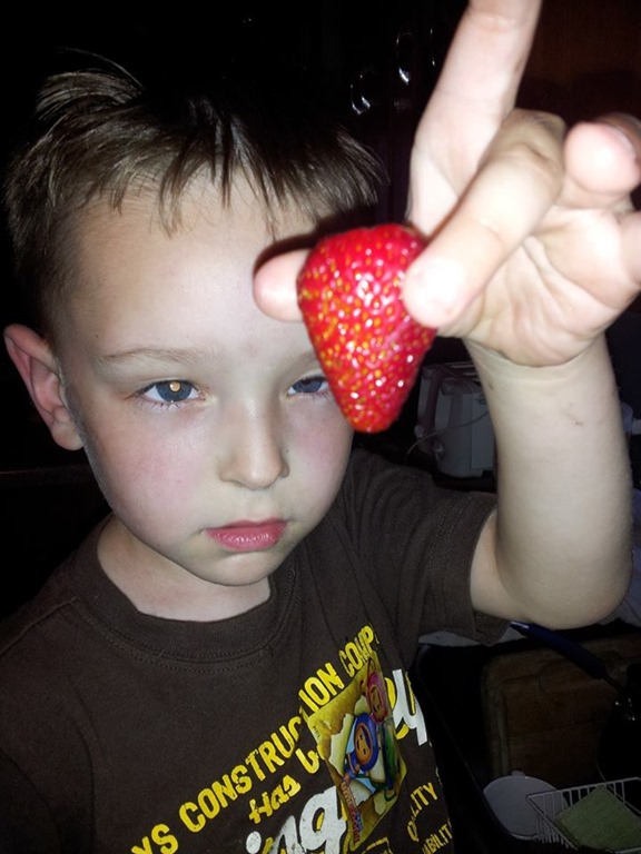 Then he got his first fully ripe strawberry and boy was that an exciting moment