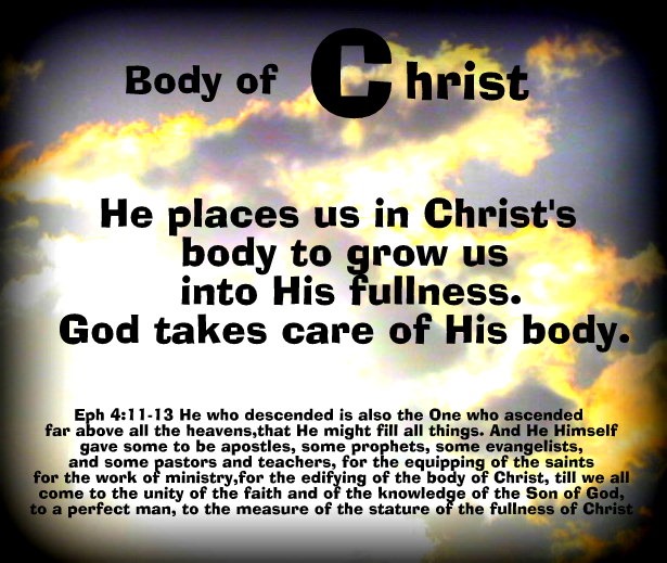 Christ’s Body – He places us in a body. We are all a part of it. We all have something to give to another. This aspect of grace is given in the unity and fellowship of being within a family. This is the place we receive uplifting, encouragement and help along our journey. We don’t have to have stages or platforms, not even ministries. This is the place of friendship. We are all one to someone. Learning to walk in Christ in the process.