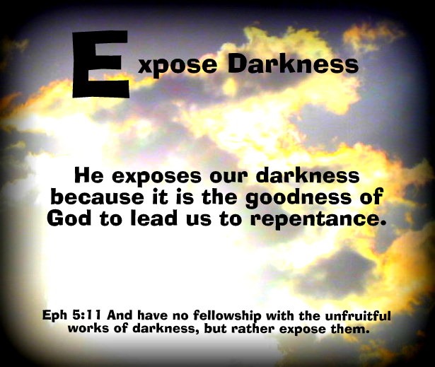 Expose Darkness – The bible tells us that it is God’s goodness that leads us to repentance and there is no repentance without exposure. God uncovers our dark places and shines His light in and pours in the water of His love so that we can GROW in GRACE.
