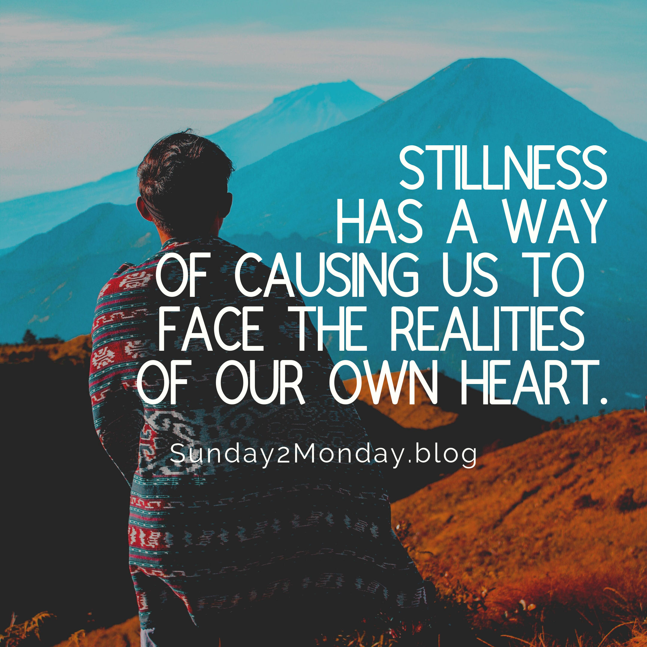 I remember a song we use to sing at church when I first received Christ. One line of it said, “God in the stillness, I fall on my knees weeping and broken by my sin.” Stillness has a way of causing us to face the realities of our own hearts. –Tweet This!