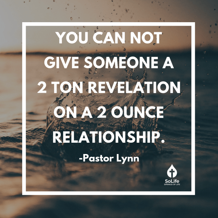 Pastor Lynn has often said, You can not speak into other people’s lives