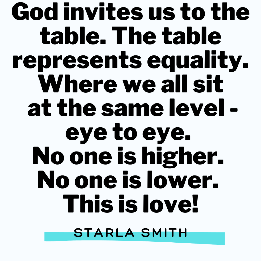 God invites us to the table. The table represents equality. Where we all sit at the same level – eye to eye. No one is higher. No one is lower. This is love!