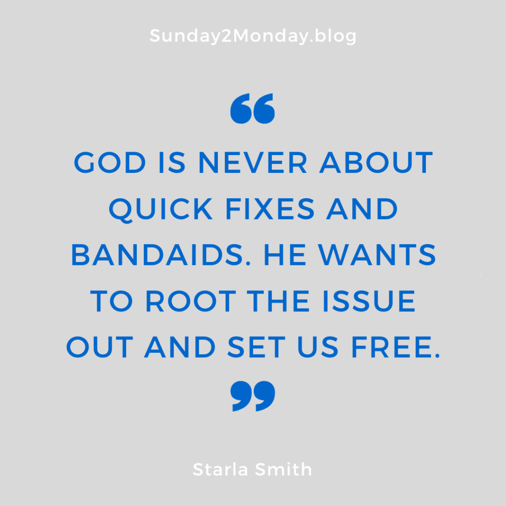 Autopilot life sweeps this stuff under the rug and doesn’t deal with it. We pretend we are fine, all the while darkness is taking us over. But if we would live how the bible says to live – VIGILANT, WATCHFUL, AWAKE – if we would allow a “one another” to confront the bad attitudes coming out of us. (I am not saying just anyone has that space to speak. But we ought to have one or two who we have enough relational bridge built that they can call us out without us making them the enemy too.) If you don’t have those people. Get some! We need to allow a “one another” to call us to go and deal with this stuff. Thankfully I had a friend who just plain out told me, “Starla, that is wickedness! You need to go talk to the person that hurt you.” My immediate answer was, “NO! They have a problem and they can figure it out!” My friend said, “I love you and you know I do. That’s not the Bible or the gospel. I will pray for you!” Slowly over the week, my hard heart was pierced by the conviction of the truth she had spoken. I began to call out to God for help. (at first, honestly, just thinking if I could confess it. God would forgive me and I could move on already) But God is never about quick fixes and bandaids. He wants to root the issue out and set us free.