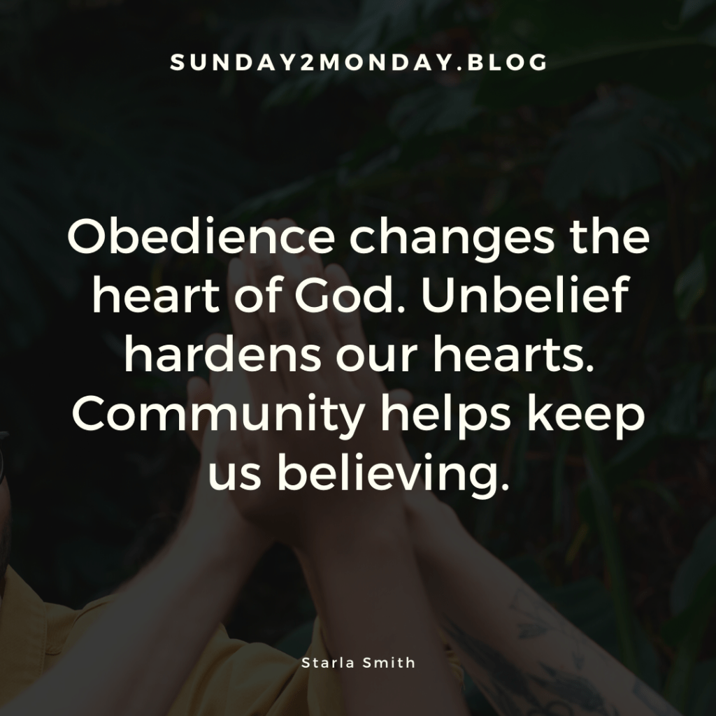 We all need encouragement because without in we start to slip into unbelief both about ourselves and toward God. A believing heart is a heart that will walk in obedience when God calls. But an unbelieving heart will walk away and think, “I can’t do that” forgetting that God can do the impossible, even the impossible through us. Community helps us to keep our eyes adjusted correctly and to keep them lifted up to God because it is really easy to just see what we are not good at or what we cant do.