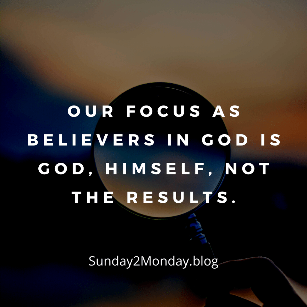 Our focus as believers in God is God, Himself, not the results. Honestly, that is hard to accept. It’s easy to say but in practicality and within the culture we live in results seem to matter so much more than anything else. They are seen as the goal! Nonetheless, it is true. He is the prize! James 1:12 Blessed is the man who remains steadfast under trial, for when he has stood the test he will receive the crown of life, which God has promised to those who love him. The results we need and the one result God is ultimately after is to just be with you through the trial and the struggle! In doing that, we endure the challenge and come out the other side victorious. God is at work when we are with Him. It’s in the waiting that He is found. Sometimes we breeze right by the in between seasons that are sandwiched between the old season and the new season. The space where change is still uncomfortable and the new hasn’t quite settled in yet. It is there in the middle of the waiting for all that fullness of the new to come that we are most vulnerable. Fix your eyes on Jesus! He is the way through.