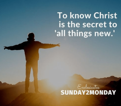 Without a view from heaven that all creation reflects the glory of God – it just simply illustrates that we live in a weary cycle that goes on and on and on. Where is the new day? or the new thing? So it seems, we can deduce from this book, that to know Christ is the secret to ‘all things new.’