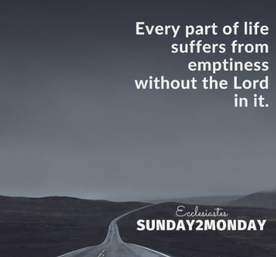 I’ve started reading Ecclesiastes. Most stay away from this book due to its gloominess. It is written by Solomon, King David’s son, who asked the Lord for wisdom. He is considered to be the wisest man who ever lived. He wrote Proverbs, Ecclesiastes, and Song of Solomon. As I began to study, I pondered the reason this book gets tagged as negative and gloomy. I think it is because this book was written from the perspective of ‘Under the Sun.’ It is an expose’ of what it is like to live the human life without an eternal perspective. It gives us a view of life without heaven or eternity in view and how every part of life suffers from emptiness without the Lord in it.