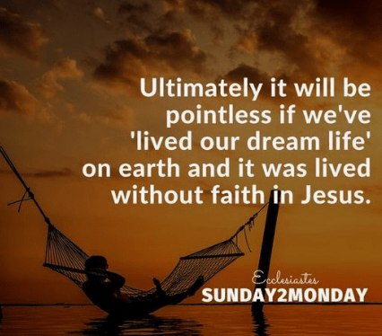 What is the point of having a hundred children, if you’re not going to share your life with them. If God gives you the ability to get wealth, possessions, and honor but your own kids don’t even mourn your death what kind of life is that? Ultimately it will be pointless if we’ve ‘lived our dream life’ on earth and it was lived without faith in Jesus.
