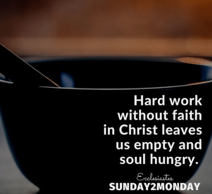 The “preacher” takes us back to the basics. Whether we are wise or foolish – we still got to eat? Every man has to work for his food and yet even when his stomach is full, his souls may still be empty. Jesus said, “Man shall not live by bread alone, but by every word that comes from the mouth of God.” Hard work without faith in Christ leaves us empty and soul hungry.