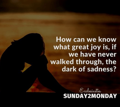 The “preacher” starts chapter 7 off very proverbs like. Proverbs is one of my favorite books of the Bible. Each couplet reveals a truth that is deeper than you may think. Just like here in these verse, at face value, you may think to yourself, “What? How can sadness be better than laughter?” But the truth is how can we know what great joy is, if we have never walked through, the dark of sadness?