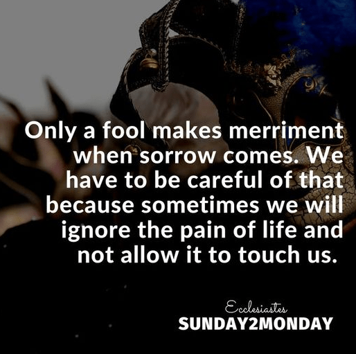 Sorrow teaches the heart things that fun and enjoyment cant. Only a fool makes merriment when sorrow comes. We have to be careful of that because sometimes we will ignore the pain of life and not allow it to touch us.