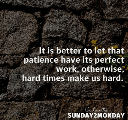 We often like to start things, but finishing them can be hard! We may think that to finish is better than to begin but if we look at the context of this chapter we can see that he is speaking of the end of sadness and sorrow is better than it’s beginning. We often make wrong assumptions when hard times come. Especially in the beginning and in an “under the sun” view of life. We may think that God is out to get us or life is trying to destroy us. Life is rough and it is something to endure, with patience. It is better to let that patience have its perfect work. (James 1:4) Otherwise, hard times make us hard.