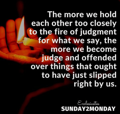 It would do us good as we encounter people who have no guard over their mouth to put one over our ears. It is easy these days to become offended. It seems everyone has taken up arms over words spoken but the truth is the more we hold each other too closely to the fire of judgment for what we say, the more we become judge and offended over things that ought to have just slipped right by us.