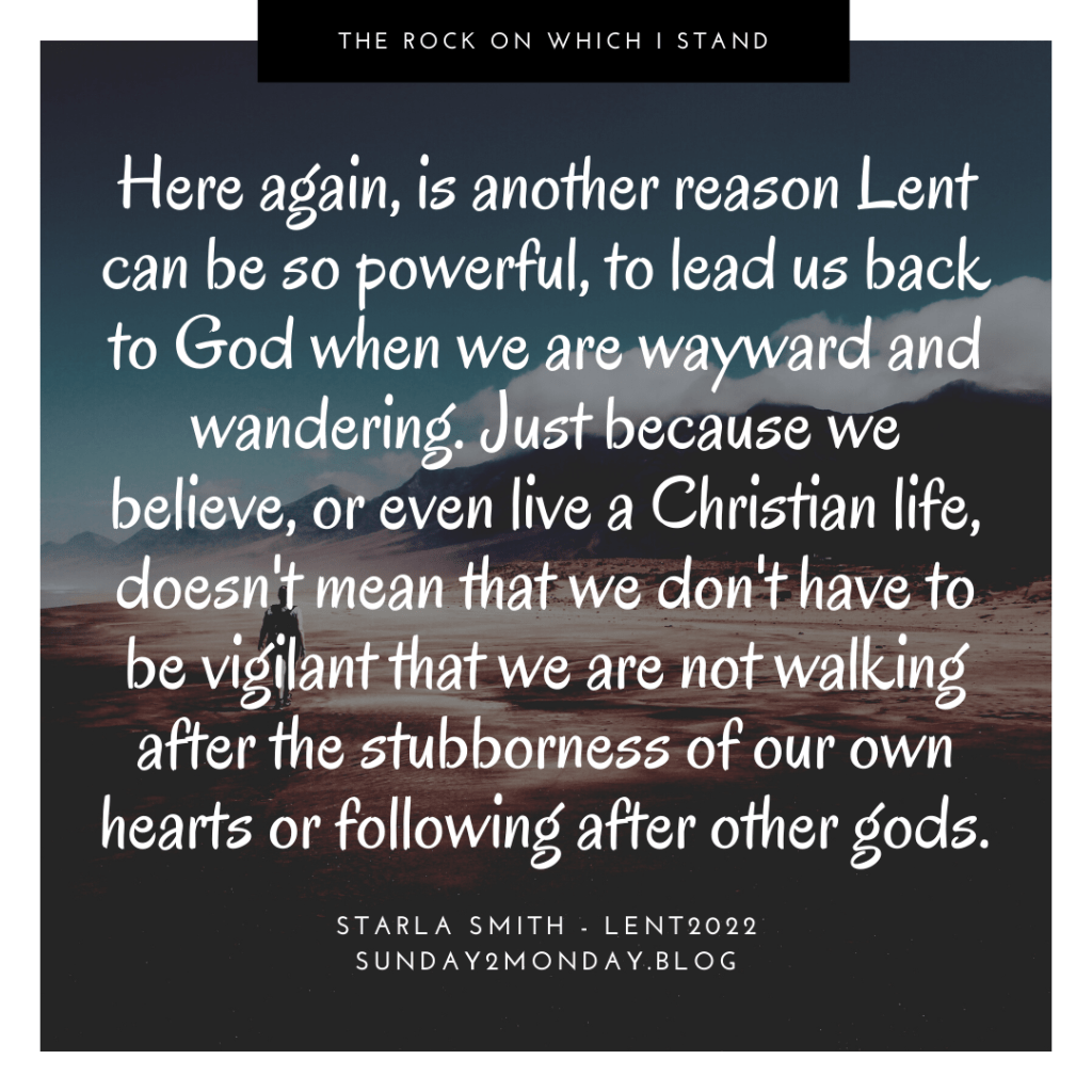 I’ve walked with the Lord for 24 years, before I met Him I followed after my own stubborn heart and I ended up doing, being part of, and participating in some of the lowest, awful, and sinful things. I understand the path to ruin is slippery and quick and sometimes you don’t even know that you’re living in it. If not for the Lord Jesus Christ and His grace – woe is me. Here again, is another reason Lent can be so powerful, to lead us back to God when we are wayward and wandering. Just because we believe, or even live a Christian life, doesn’t mean that we don’t have to be vigilant that we are not walking after the stubborness of our own hearts or following after other gods.