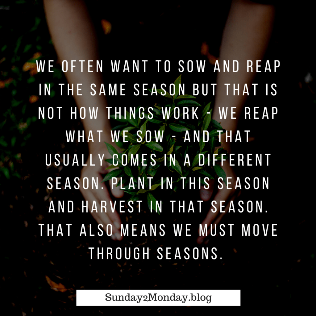 God knows our times and seasons. If we pray and ask him – He will help us to know what season we are in and how to get in the right season at the right time.