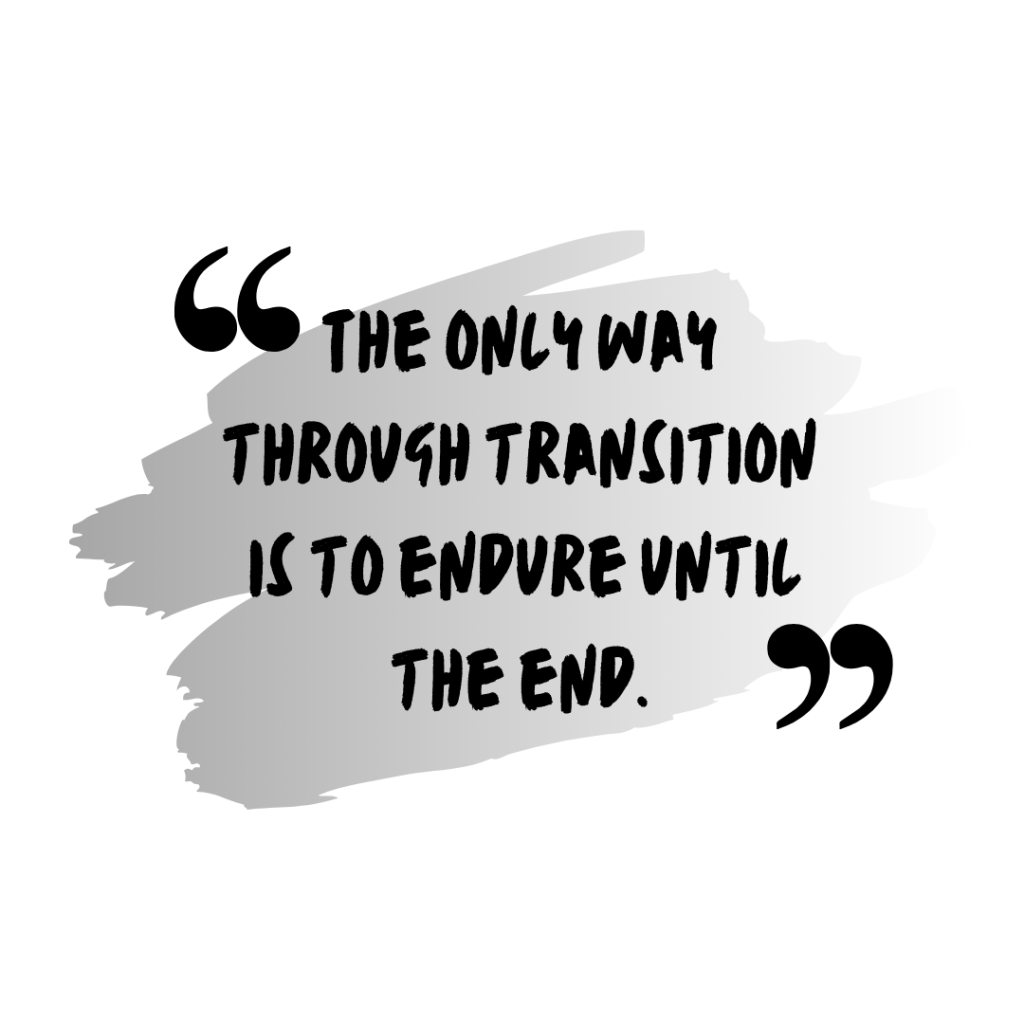 So I encourage you. If you are in transition: ENDURE.