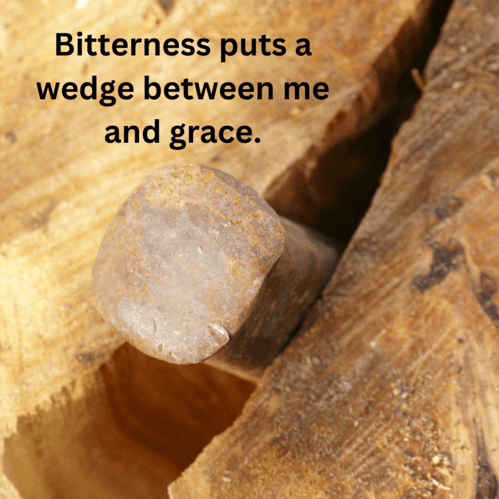 Bitterness keeps us apart from grace. It is a foe that we find along the road as we go. It robs us of joy. It makes us critical and irritable. It drives a wedge between us and who ever is the object of our frustration. We tend to water and feed it but can’t see that it is poisoning us.
