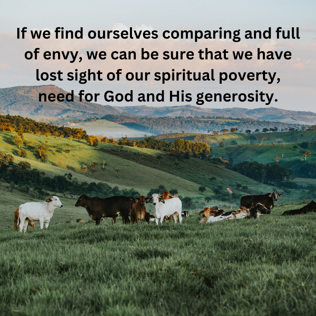 So, what then… We must stop comparing ourselves to others and take what the Lord (the vineyard owner) gives. He is pouring His grace – it’s what we do not deserve. He gives what is His as He wills. It’s all blessing and generosity. There is no place for entitlement in His kingdom. Did He not say, “So the last shall be first, and the first last: for many are called, but few chosen.”