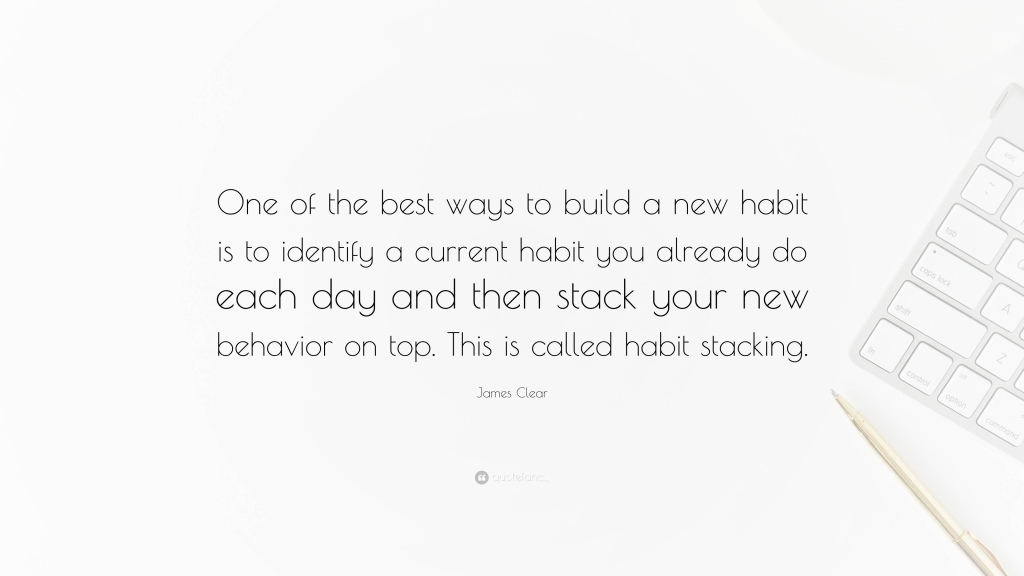 - What habits do you currently have that you don’t want to change and think about what you could stack with them?