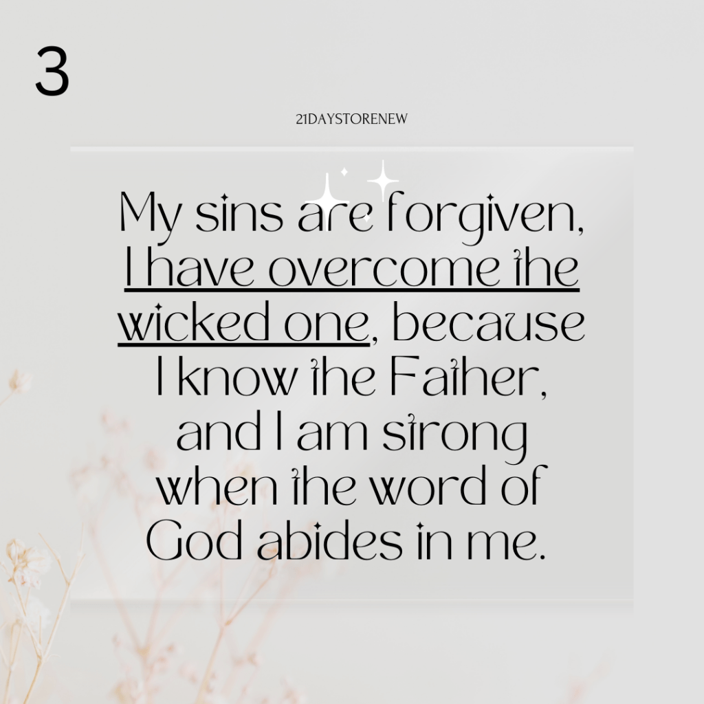 John 2: 12-14 I write to you, little children, because your sins are forgiven you for His name’s sake. 13 I write to you, fathers, because you have known Him who is from the beginning. I write to you, young men, because you have overcome the wicked one. I write to you, little children, because you have known the Father. 14 I have written to you, fathers, because you have known Him who is from the beginning. I have written to you, young men, because you are strong, and the word of God abides in you, and you have overcome the wicked one.