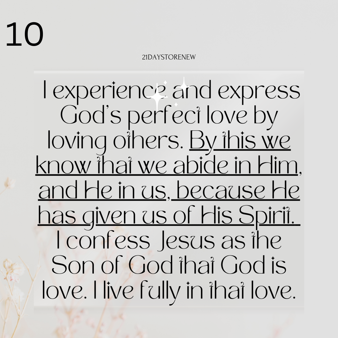 1 John 4:12 No one has seen God at any time. If we love one another, God abides in us, and His love has been perfected in us. 13 By this we know that we abide in Him, and He in us, because He has given us of His Spirit. 14 And we have seen and testify that the Father has sent the Son as Savior of the world. 15 Whoever confesses that Jesus is the Son of God, God abides in him, and he in God. 16 And we have known and believed the love that God has for us. God is love, and he who abides in love abides in God, and God in him.