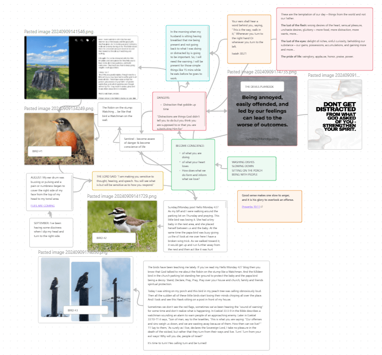 IT’S AMAZING — I can put my pieces together. I’ve tried doing this with my journal with tags and such, but it is just too linear and not at all what I had in mind. So, it has become a personal space for my thoughts. But this!! This I can take from all the places I write and put them into connected visual context. This is what “all this looks like” in my brain and how I see the pieces and parts being layered one upon another and connecting as the Lord teaches me new things.