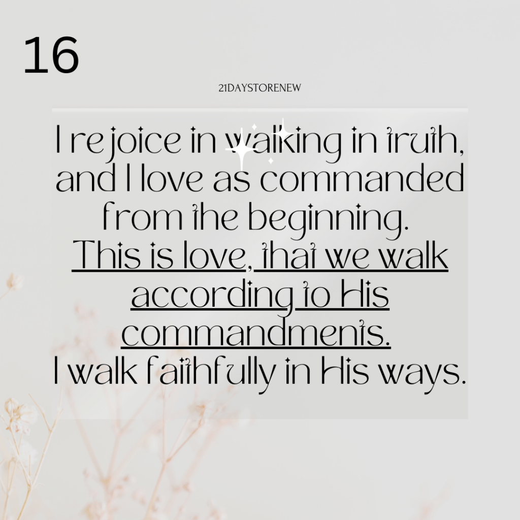 2 John 1:4-6 I rejoiced greatly that I have found some of your children walking in truth, as we received commandment from the Father. 5 And now I plead with you, not as though I wrote a new commandment to you, but that which we have had from the beginning: that we love one another. 6 This is love, that we walk according to His commandments. This is the commandment, that as you have heard from the beginning, you should walk in it.
