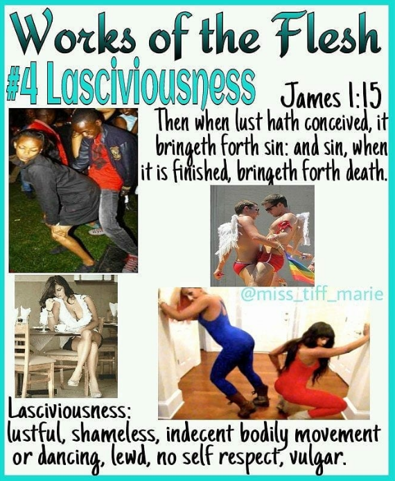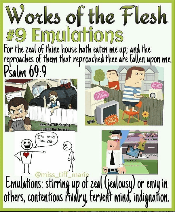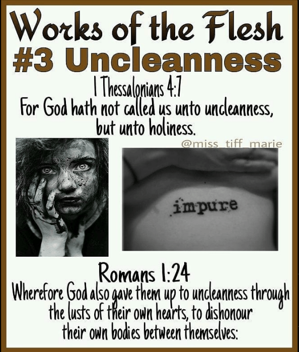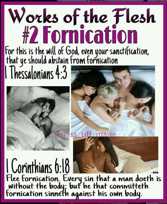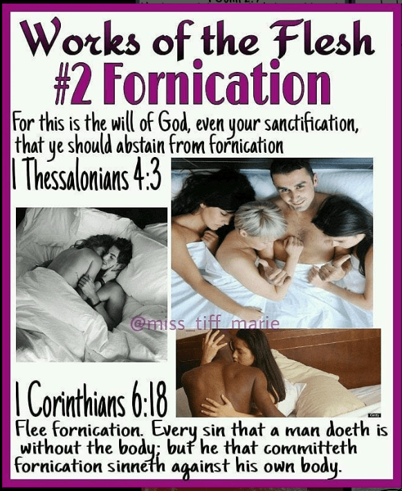 In 2018 a Instagram user named @miss_tiff_marie created a graphic series about the works of the flesh. I found these to be helpful in having a deeper understanding of the works of the flesh.