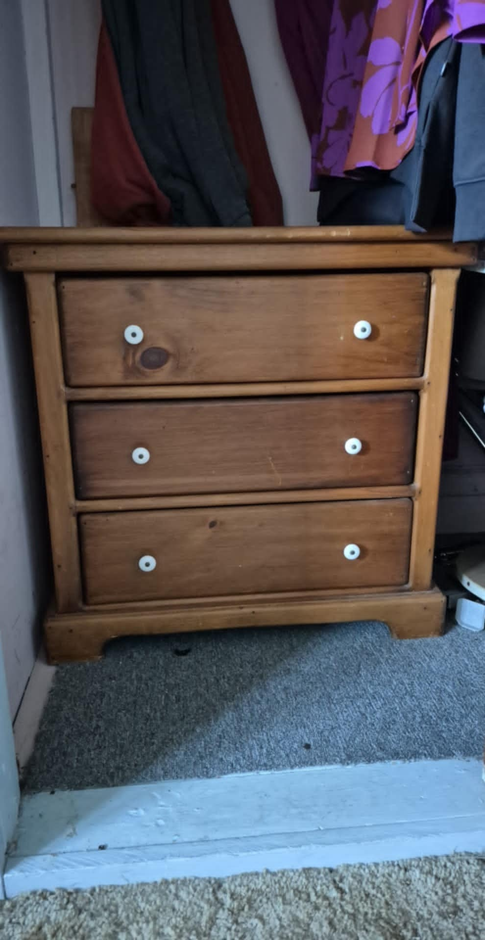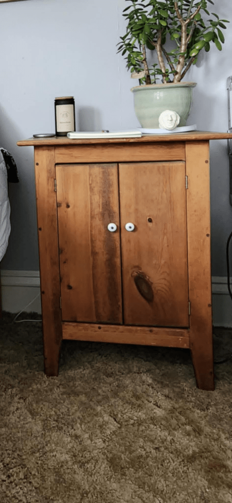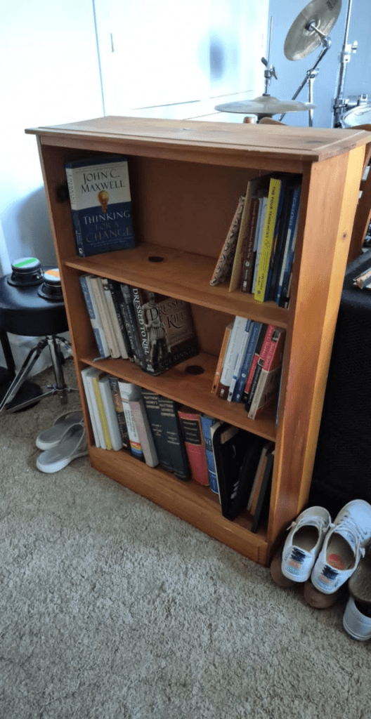We went to an estate sale. Week 1 – I found that side table. Week 2 – I found this matching bookshelf. Week 3 – I found that little matching dresser. YAY!