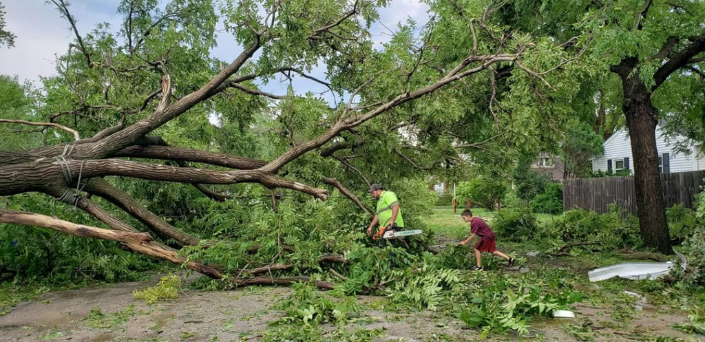 Most people would be overwhelmed by this tree, what to do with it. But he worked 20 years in the tree service industry. This was an old hat to put on. He cut and my son and neighbors cleared the tree from the street in less than an hour. Our trees and yard were clear that day. My son spent the next week helping his best friend’s family around the corner and my husband went to work by day and in the evening moved on to neighboring trees.