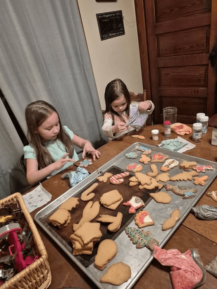 And Grandpa did cookies with the girls this past weekend. They loved frosting the cookies.